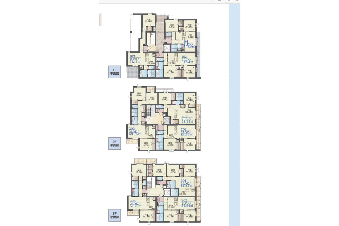 | 備考欄 | 人気のペット共生型賃貸住宅「+わん+にゃん」 ■ 建物 / ヘーベルメゾン 「PLANEX-3」 ■ 構造 / 重量鉄骨造・制震構造 ■ 階数・戸数 / 地上3階建て・9戸 ■ 想定企画 / 3LDK×2戸・2LDK×6戸・1LDK×1戸 ■ 延床面積 / 600.20㎡(181.56坪) ■ 設計施工 / 旭化成ホームズ株式会社 30年一括借上げシステム |