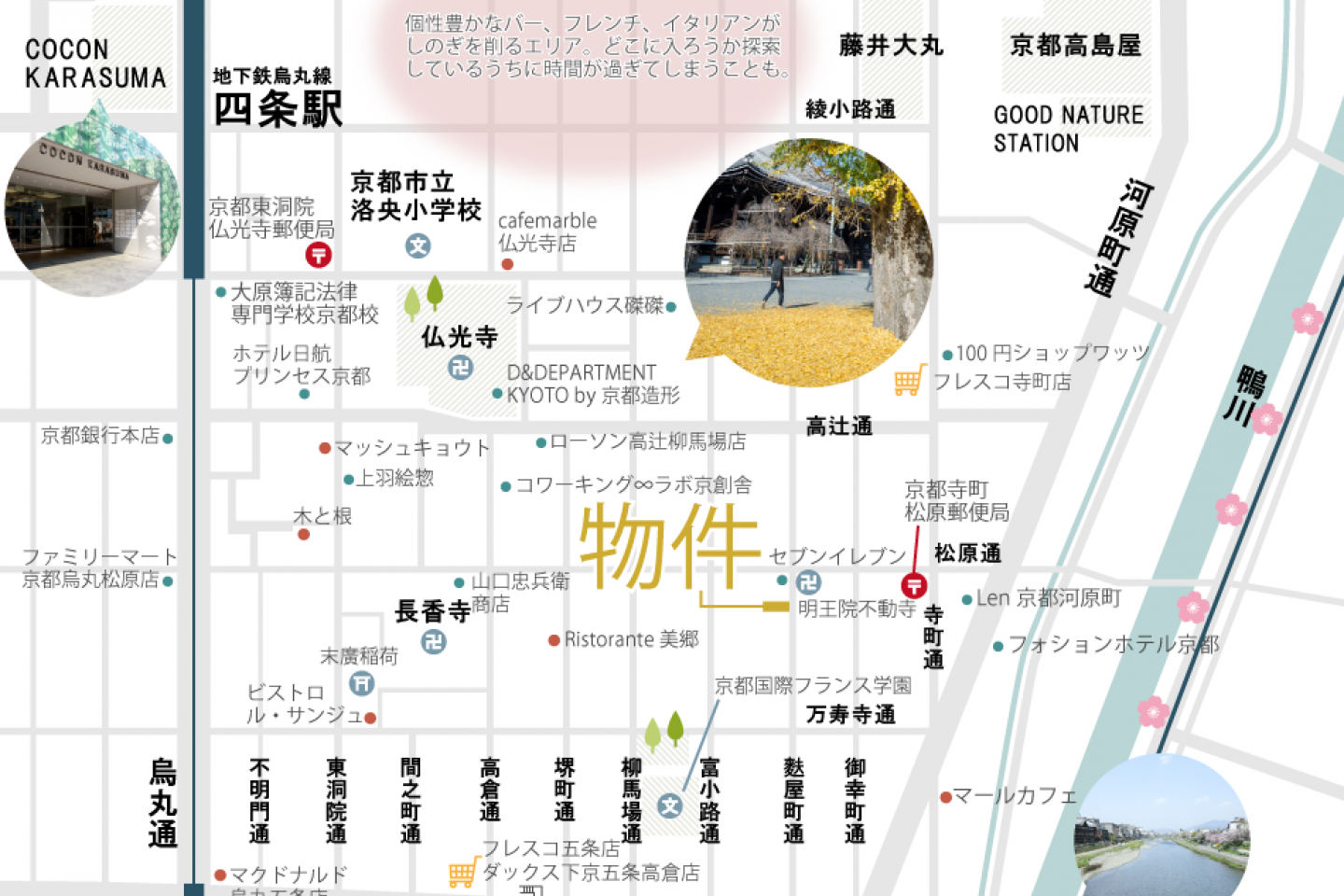 | 交通機関 | 阪急京都本線「河原町」駅徒歩7分 京阪本線「清水五条」駅徒歩7分 京都市営地下鉄烏丸線「五条」駅徒歩10分 |