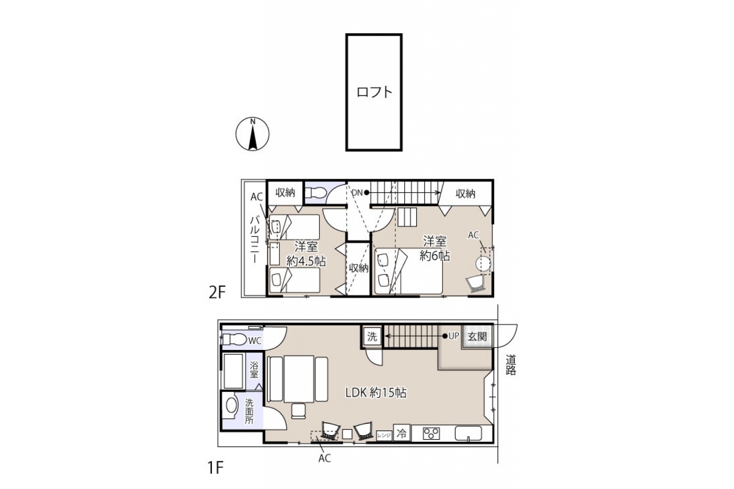 | 区分 | LDK:15.00畳、洋:4.50畳、洋:6.00畳 |