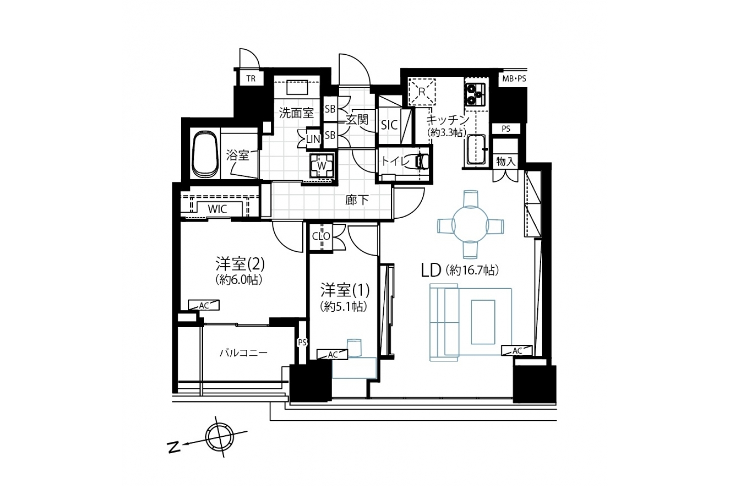 | 区分 | 洋:16.70畳、洋:6.00畳、洋:5.10畳 |