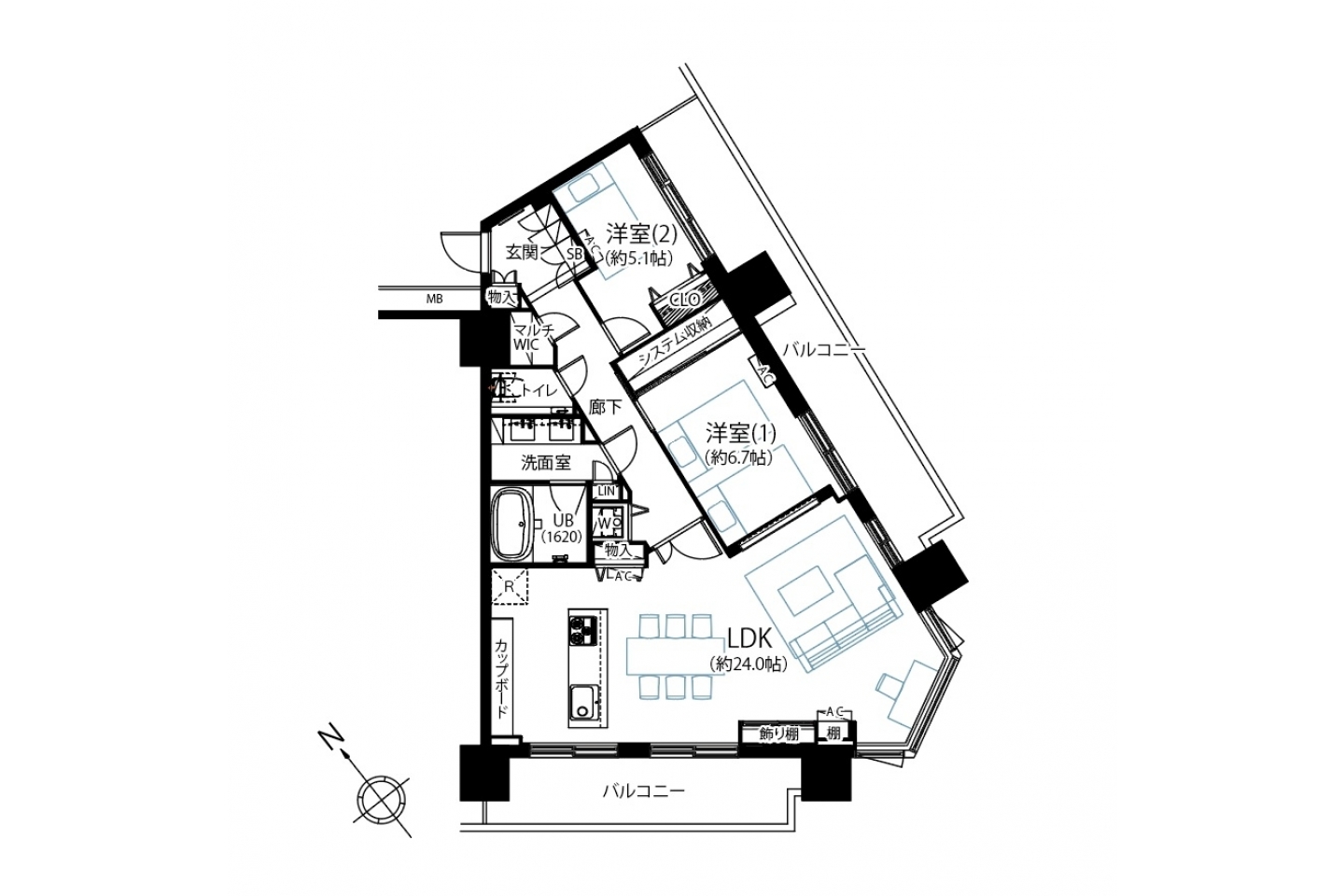 | 区分 | 洋:24.00畳、洋:6.70畳、洋:5.10畳 |