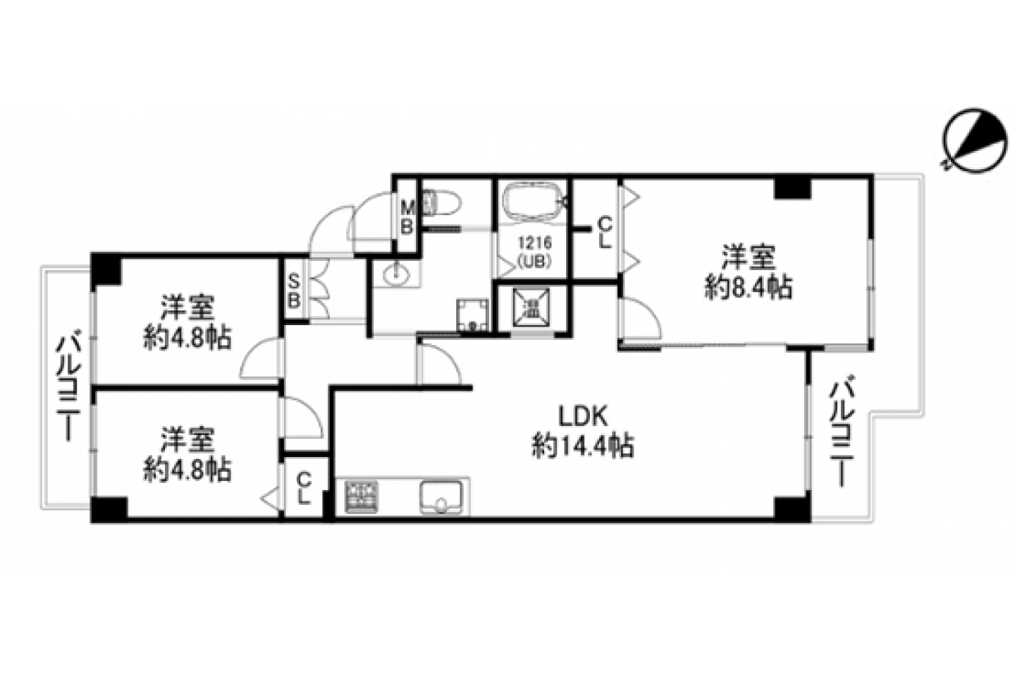 | 区分 | LDK:14.40畳、洋:8.40畳、洋:4.80畳、洋:4.80畳 |