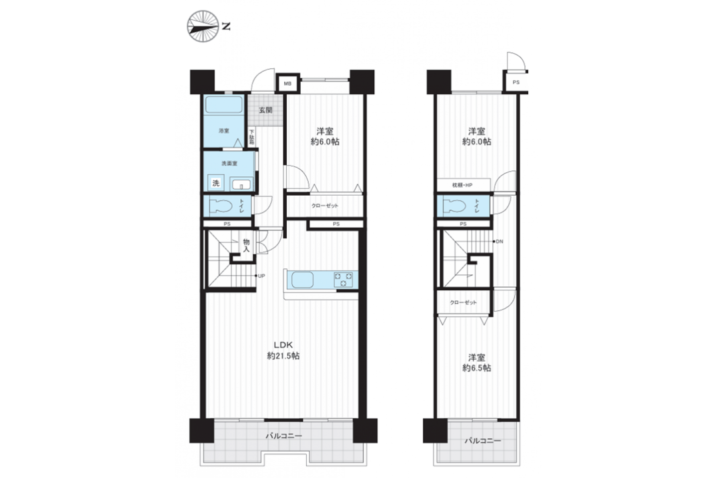 | 区分 | LDK:21.50畳、洋:6.00畳、洋:6.00畳、洋:6.50畳 |